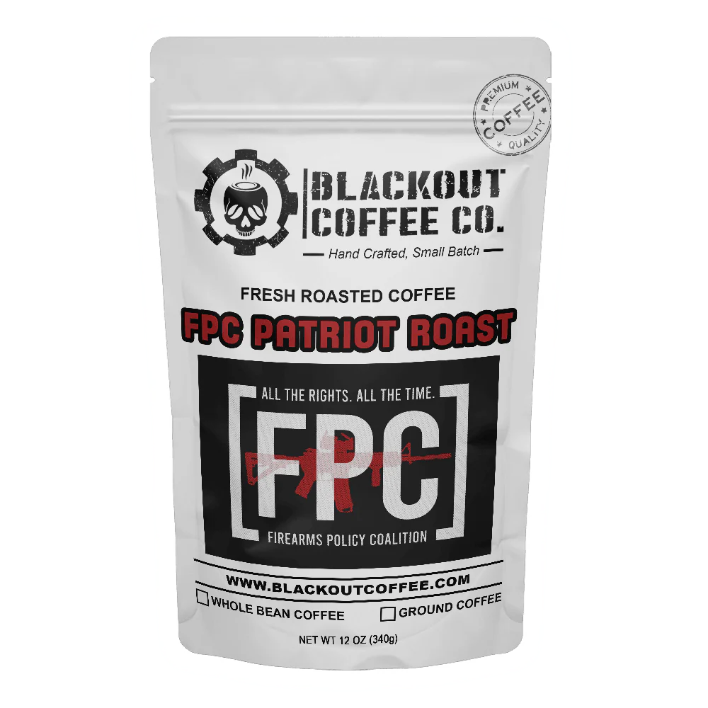 FPC Patriot Roast! Medium roast with low acidity and light to medium body. Fruity flavors and a hint of chocolate make this coffee a great “any time of the day” cup of Joe. $2 of every bag of our FPC Patriot Roast will be donated to FPC to help them defend our 2nd Amendment rights! “Firearms Policy Coalition” is a coalition of hundreds of thousands of Patriots organizing to take back our Constitution and defend the inalienable, fundamental, and individual right to keep and bear arms. Contains 12 oz of coffee in each bag.